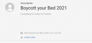 If you found out about Boycott your Bed through an Action for Children campaign or communication, social media, are a member of staff, an existing supporter, please use the link below to set up your fundraising page: