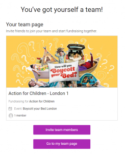 Now you have your personal page created, you are ready to create your team page. Remember, those who set up team pages are proven to have more successful levels of fundraising.