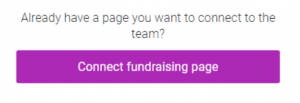 Join the team! Click on ‘Create your fundraising page’ (Note: if you have already created your fundraising page, you can click on ‘connect fundraising page’, select the page you’d like to connect and then continue – you’re done!)